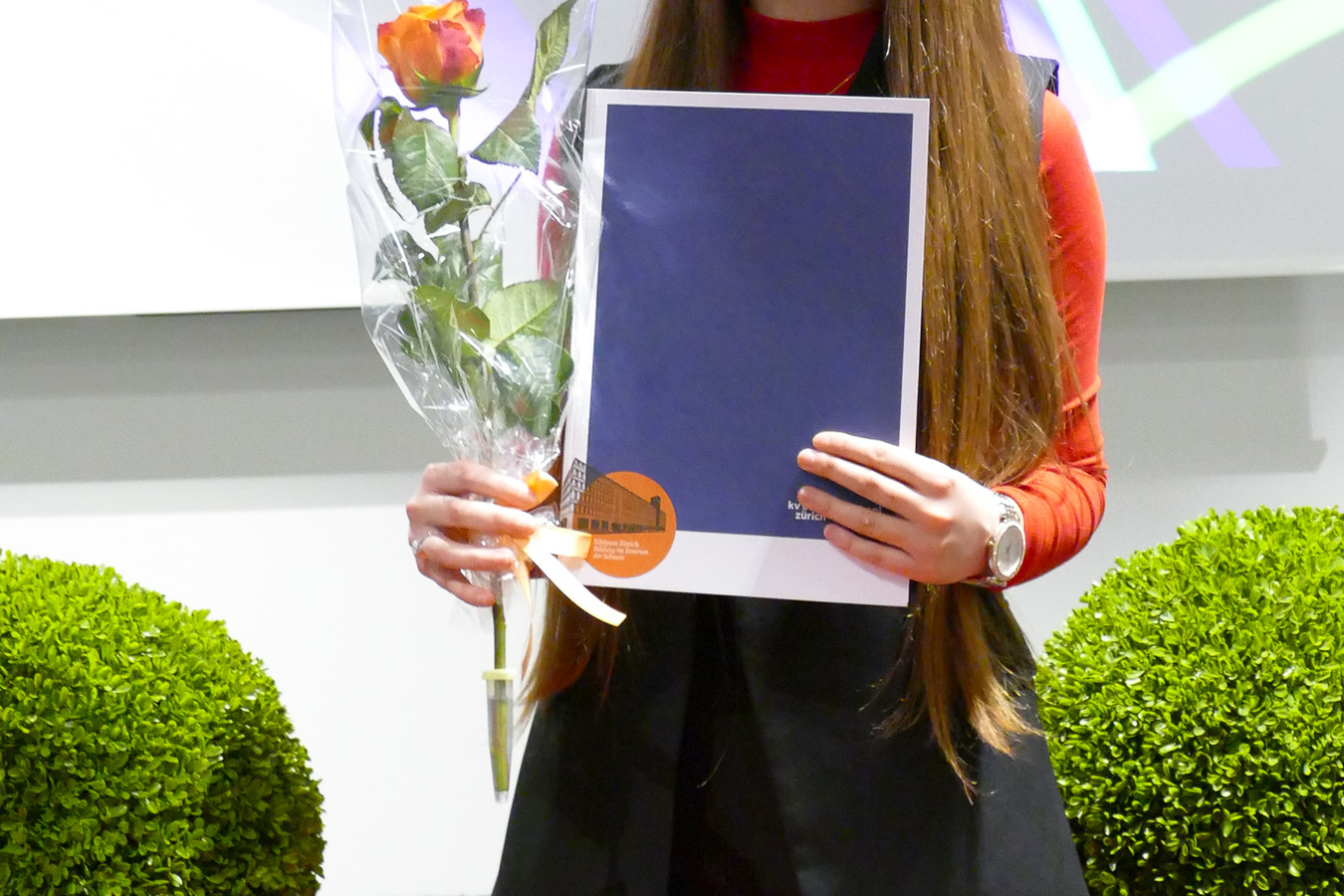 Im Anschluss durften alle ihr Zertifikat und eine Rose abholen und dann gemeinsam auf den Erfolg mit einem Glas Prosecco anstossen. Die Stimmung am Apéro war freudig und ausgelassen.
